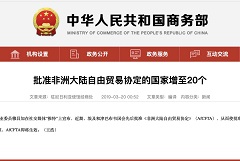 非洲大陸自由貿(mào)易協(xié)定            使批準(zhǔn)該協(xié)定國家數(shù)量增至20個