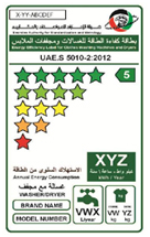ESMA于2011年4月13日頒布實施國家能源效率和保護計劃(EESL)。依據該計劃,ESMA自2011年開始,先后將空調、洗衣機、冰箱納入EESL的管控范圍。所有在管控范圍內的產品,都必須通過產品測試以獲取能效證書,并加貼能效標簽(如左圖),方可進入阿聯(lián)酋市場。