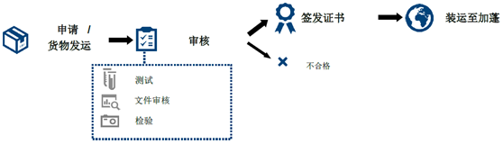 ●裝船前提供貨物相關的地點和臨時有效日期信息以進行物理檢驗(填寫認證申請相關的表格)。