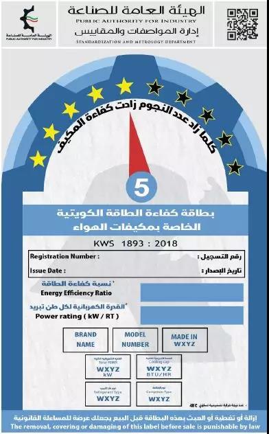依據(jù)科威特工業(yè)部PAI的要求,若空調能力不超過70,000 Btu/h(20 kW),則其必須滿足KWS 1893: 2018的MEPS和能效標簽要求,并在相應官網(wǎng)上注冊后,此空調產(chǎn)品才可以進入科威特市場。該新要求強制執(zhí)行時間為2019年8月5日。