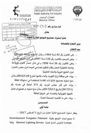 2018年9月1日 | 除以上產(chǎn)品外的其他鹵素?zé)?/span>Halogen bulbs將停止進(jìn)口科威特市場(chǎng) |