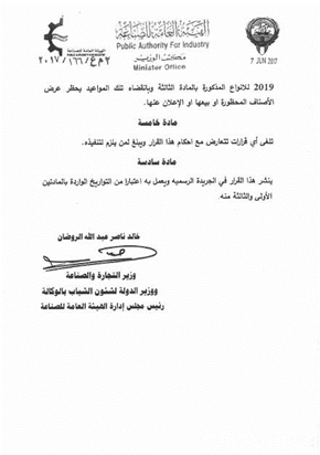 2018年8月1日 | 以上相關(guān)產(chǎn)品在2017年8月1日該規(guī)定生效前,已進(jìn)入科威特市場(chǎng)的將被全部要求撤出,不得再繼續(xù)進(jìn)行銷售 |