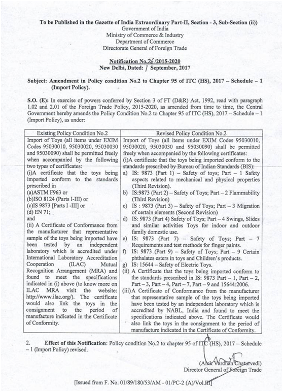 近日,印度工貿(mào)部(Ministry Of Commerce and Industry)對國外玩具產(chǎn)品出口印度新出臺一則新規(guī):Notification No.26/2015-2020,目前對我國出口印度玩具業(yè)務(wù)已造成嚴重影響;