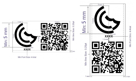 GCTS標(biāo)識(shí)由帶有NB號(hào)碼及二維碼的G-mark標(biāo)識(shí)組成。GCTS標(biāo)識(shí)應(yīng)該輕易可見、可讀,并為永久性標(biāo)識(shí)。使用掃描儀或智能手機(jī)的閱讀器應(yīng)用程序可讀取,且任何放大或縮小均應(yīng)保持同樣比例。產(chǎn)品、包裝、說明書上的標(biāo)識(shí)尺寸要求如下: