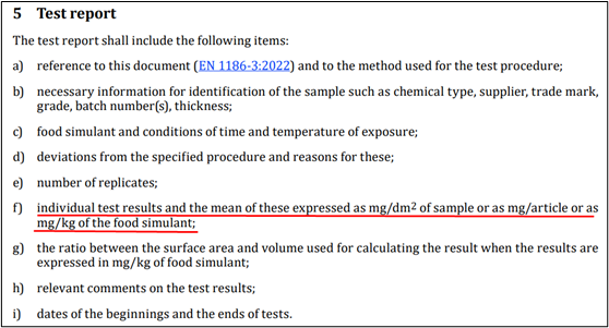 根據(jù)(EU)No. 10/2011及其修正案article 12 第2條及article 17第4條的規(guī)定的新條件,為滿足關(guān)于所有遷移試驗類型測試結(jié)果表達方式的要求,兩項標準都調(diào)整了測試方法,并增加了相應(yīng)的結(jié)果表述。