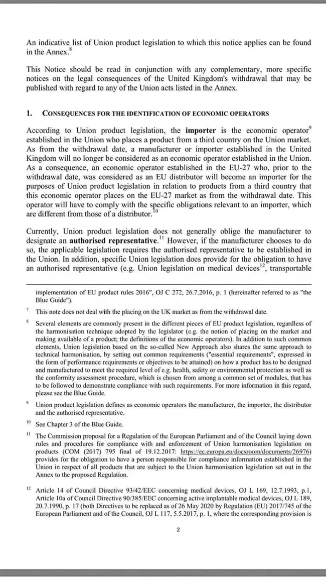 當然,這一變化對國內生產企業(yè)的影響并不大。國內企業(yè)最關心的還是歐盟授權代表,通告也特別說明,自2019年3月30日起,設立在英國的公司,由于其已經不在歐盟境內,所以將不再被認可為法規(guī)或指令要求的授權代表。
