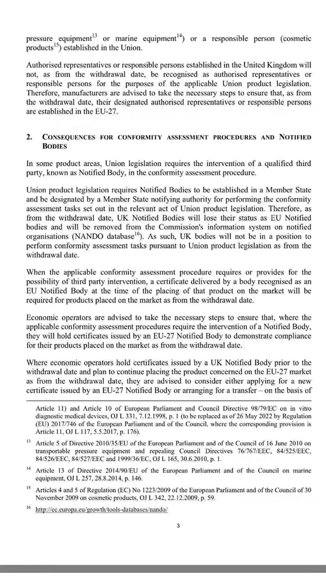 通告明確說明了,在2019年3月30日之后,所有英國的公告機構將失去公告機構的資質。