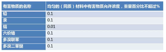 該法規(guī)主要測(cè)量的有害物質(zhì)名稱及含量分別是: