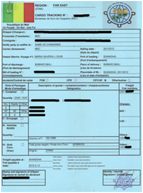 根據(jù)馬里(MALI)港務(wù)局要求:針對發(fā)往馬里的貨物,必須辦理馬里CTN NO.(貨物跟蹤號碼),否則在起運(yùn)港船公司無法正常出具海運(yùn)提單,目的港將無法清關(guān)和提貨。馬里CTN NO.和尼日利亞CTN NO.類似,CTN NO.是英文Cargo Tracking Note Number的首字母縮寫,意思是貨物跟蹤號碼,又稱為貨物進(jìn)口清單。