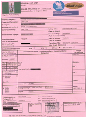 CTN NO.需要顯示在提單上,一份提單對(duì)應(yīng)一份CTN NO. ,CTN的資料必須與提單一致。收貨人必須持正本CTN在目的港清關(guān)。所有出口到尼日利亞的貨物,船公司也要求出口商提供貨物跟蹤號(hào)碼CTN NO.,如果沒有號(hào)碼,則船公司無(wú)法出提單。